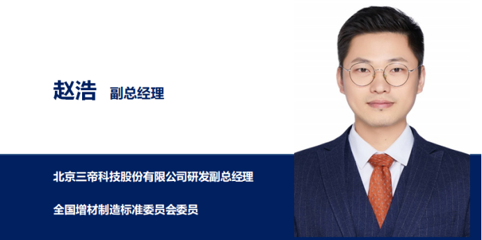 趙浩博士分享了題為《產業(yè)化金屬增材制造技術與應用》的報告,分別對金屬增材制造幾個主線技術的進展及應用進行了詳盡而深入的講解,對三帝科技自主研發(fā)的3DP/SLS金屬件快速鑄造工藝在航空航天、汽車、工業(yè)機械等領域的成熟產業(yè)化應用進行了分享,并對BJ粘結劑噴射金屬打印技術的研發(fā)進展及未來發(fā)展趨勢進行了分析和展望。他認為,當前金屬增材制造正在逐步走向成熟,隨著高效率、低成本、量產型技術的出現(xiàn),產業(yè)化應用空間不斷拓寬,對人才培養(yǎng)的需求增長,將創(chuàng)造出廣闊的產教融合機遇,三帝科技期待與更多的院校和科研機構開展深入合作,共同推進新技術、新應用的創(chuàng)新發(fā)展。