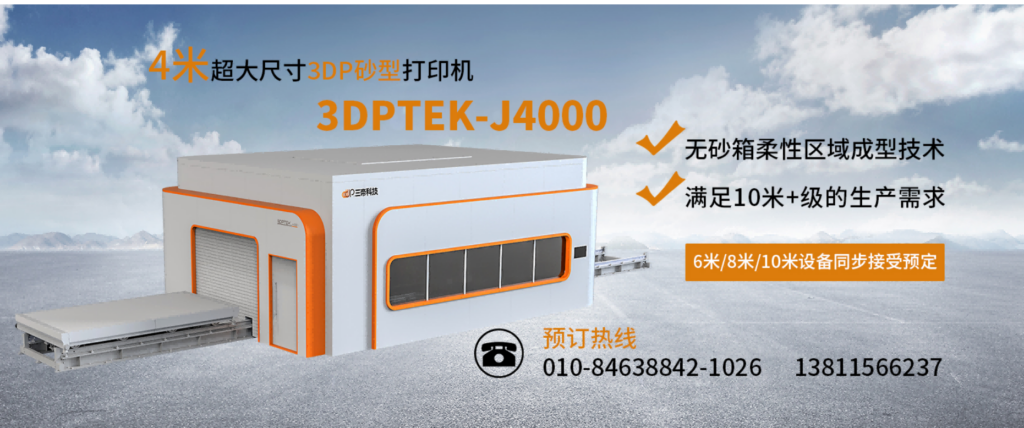 國(guó)產(chǎn)最新的大尺寸砂型 3D 機(jī) 3DPTEK-J4000 的出現(xiàn),是我國(guó)制造業(yè)不斷創(chuàng)新發(fā)展的成果。它以其先進(jìn)的技術(shù)、優(yōu)越的性能、廣泛的應(yīng)用領(lǐng)域和完善的售后服務(wù),為鑄造業(yè)帶來(lái)了全新的發(fā)展機(jī)遇。這里有一篇文章詳細(xì)論述為什么要購(gòu)買(mǎi)砂型3D打印機(jī)。